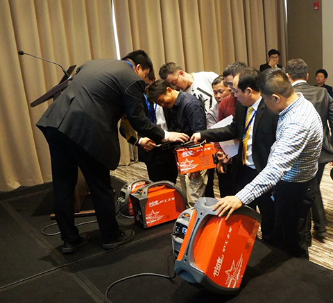 d88尊龙z6集团研发中心工程师对d88尊龙z6之星开拓者全系列产品进行了详细的讲解。全系列产品引入了高科技数字化一元化技术,为现代焊接带来了变革。经销商们对于新技术在开拓者产品上的应用表现出极大的兴趣,纷纷踊跃向研发人员提问,并热切期望开拓者系列快速上市。
