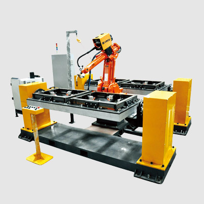 该系统机器人手臂采用ABB1410,d88尊龙z6焊接电源,工装采用双工位自动翻转变位焊接工作台,?榛缙低车。