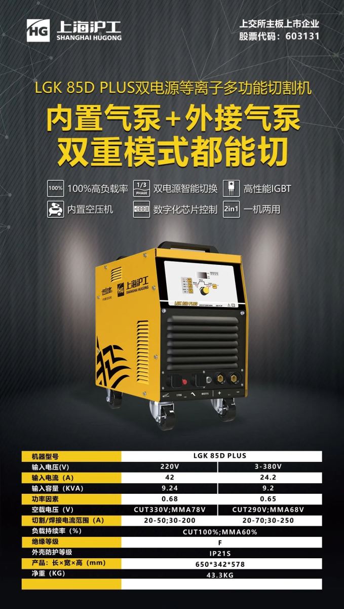 LGK 85D PLUS焊割两用机,等离子切割、手工焊快速开启随时切换。